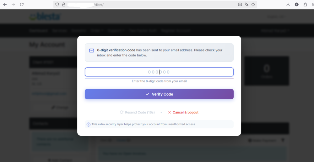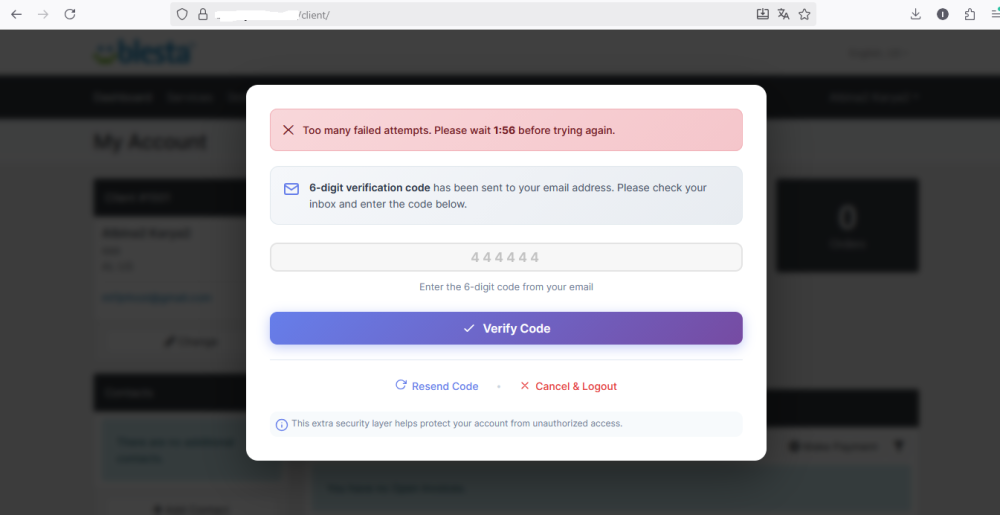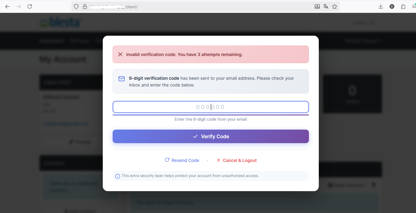 🔒 Boost Your Blesta Security: Introducing 2FA Email-Based Authentication! Stop worrying about client hacks and brute force attacks. We've listened to your security concerns and are thrilled to introduce our newest Blesta plugin: 2FA Two-Factor Auth Email Based. Forget the hassle of third-party authenticator apps that some users simply won't use. Our solution sends the verification code directly to the user's email, providing a robust, user-friendly security layer that everyone can adopt. This extra security measure is essential to shield your client accounts from unauthorized access. ✨ Key Features That Protect Your Client: Email-Delivered Codes: Verification codes are sent straight to the user's email inbox for maximum convenience. Max Attempts: Automatically temporarily block users who exceed the maximum failed 2FA code attempts to prevent brute force attacks. Timed Code Resend: Features a timer to control code resend frequency and prevent system overload. Ajax-Based Brute Force Protection: Advanced protection to stop attacks before they succeed. Login Info Analytics (Admin View): Track crucial data like IP addresses. Easily identify and ban suspicious IPs performing excessive brute force attempts. Comprehensive Admin Settings: Full control over security parameters. Seamless Ajax-Based UI Processing: Fast, smooth, and non-disruptive user experience. Force Global 2FA Enable (Admin Setting): Mandate 2FA for all users to ensure company-wide security compliance. User Control: Clients can easily Enable/Disable 2FA right from their Client Area. Configurable Limits: Set Max Attempt and Max Timeout limits via Admin Settings to fine-tune your security response. 100% Open Source Code: No secrets hidden! Full transparency and complete control for you. 💰 Incredible Value! Pricing & Order Details (Don't Miss Out on Peace of Mind!) Package Price Order Link Key Benefit Standard USD $25 Order Link Includes 1 Year of Free Updates Lifetime USD $50 Order Link Lifetime Updates for continuous security 🎁 Exclusive Offer & Support: FREE Consultation and Installation Assistance: Get up and running smoothly—our help is on the house! Custom Blesta Development: Need a unique plugin or module? We offer guaranteed lower-than-average pricing and promise to be more affordable than any other developer. Challenge us! Secure your clients and your business today!