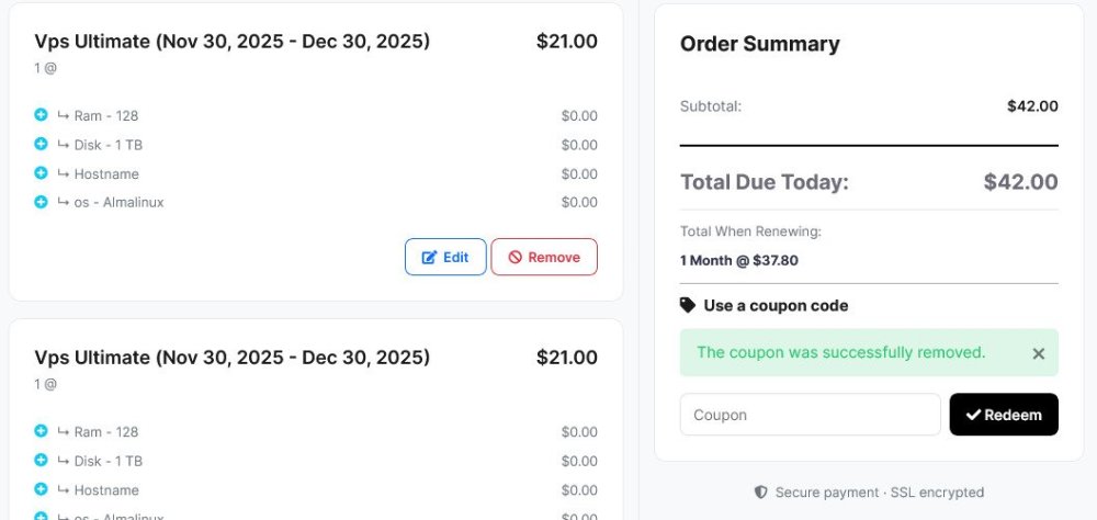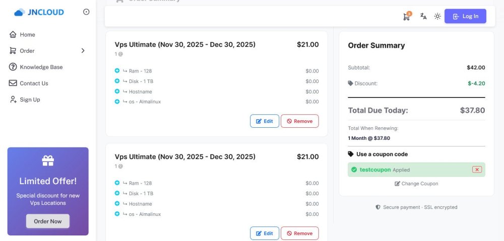 Version 1.0.9 Released - Added Remove coupon function We’re committed to responding to your requests as quickly as possible! That’s why the coupon removal feature is already live just within 1 day, and email-based 2FA is coming very soon. Please note that with these upgrades, the price will increase slightly for new buyers. However, if you already own the JnCloud template, you won't be affected—the price stays the same for you! Please redownload from download page, and replace, follow update intruction doc!